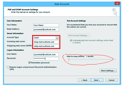 Select the POP account and click Change